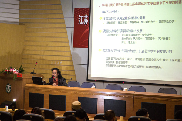 会上,中国教育部动画与数字媒体艺术教学指导委员会朱明健副主任发表题目为“知识经济时代的文化创意产业”的演讲,对宏观产业的发展现状,高校动画及媒体专业的发展和人才培养的方式做了指导性讲话;江苏省动漫艺术家协会包信源副主席就当前动画及媒体专业教育所面临的形势发表了主题演讲;江南大学数字媒体学院副院长殷俊就媒体艺术学科建设工作进行了阐述。最后,与会师生还就他们所关心的问题与到会各高校领导进行了互动交流。