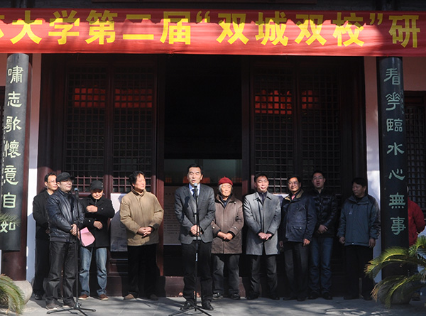 11月30日,由博业体育(China)官方网站与扬州大学艺术学院联合举办的第二届“双城双校”研究生书画作品交流展,在扬州八怪纪念馆隆重举办。我校研究生院院长全力、学工处副处长吴立平、艺术学院党委书记杨志春、党委副书记赵明及两校师生代表近100人出席活动开幕式并参观展览。全力院长代表我校研究生院在开幕式上讲话。
