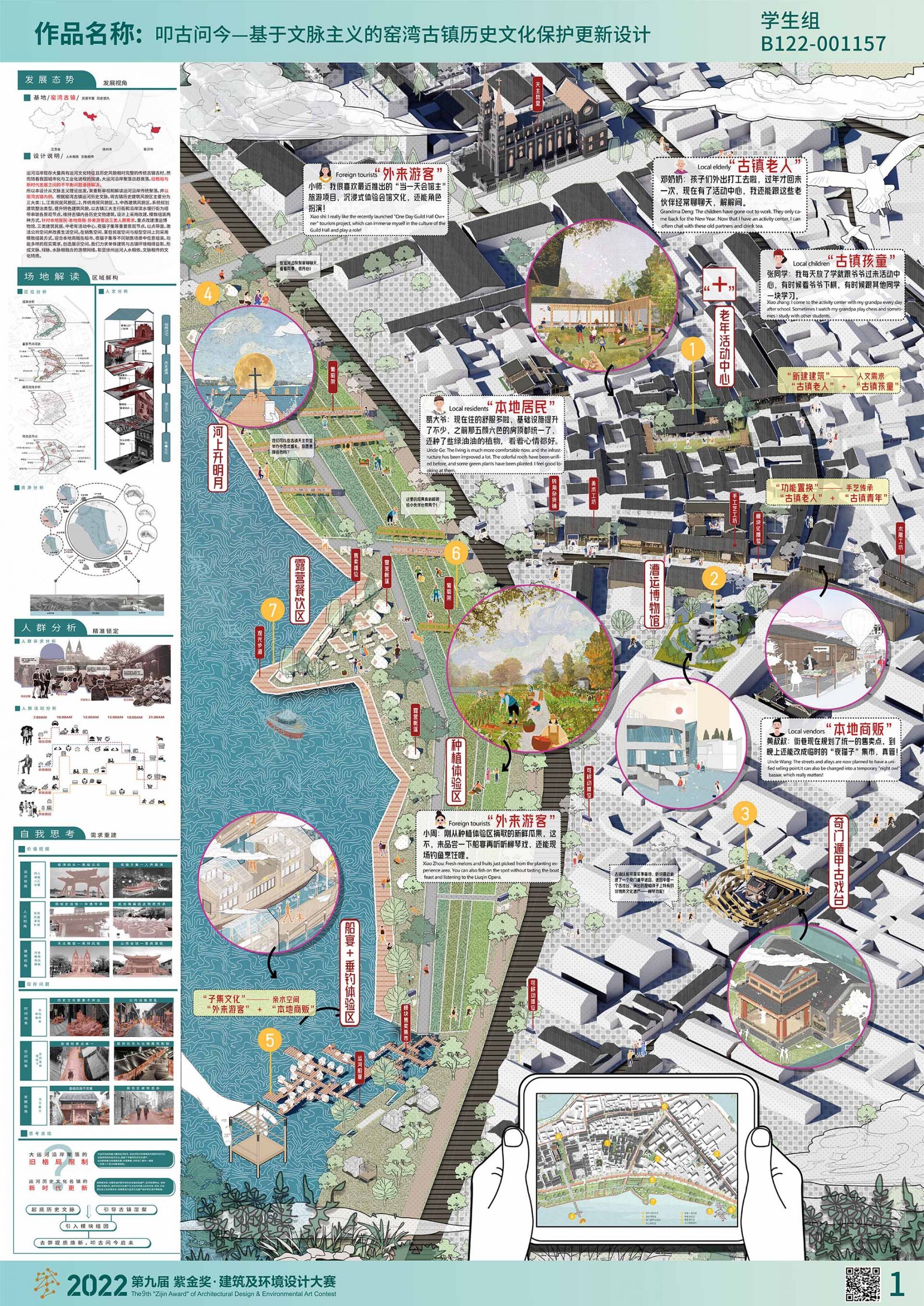 今日镇江讯 记者从市住建局获悉,江苏大学学子设计了一座“运河小镇”,让千年古运河“青春焕发”。在近日落幕的第九届“紫金奖·建筑及环境设计大赛”上,江大艺术学院研究生张天宇、黄杨、周昊璟、韩旭、师超帅设计团队精心构思的《叩古问今——基于文脉主义的窑湾古镇历史文化保护更新设计》(指导教师:李晓),获学生组优秀作品奖二等奖。这也是我市近年来参加该项赛事取得的最佳成绩。