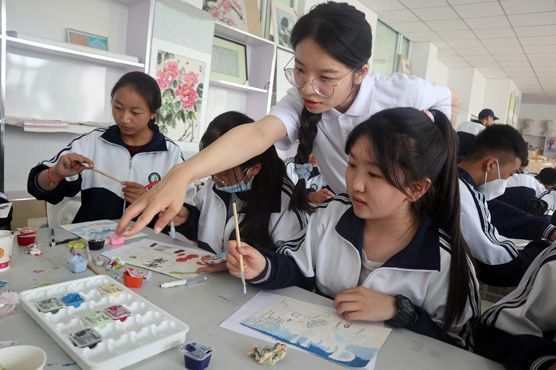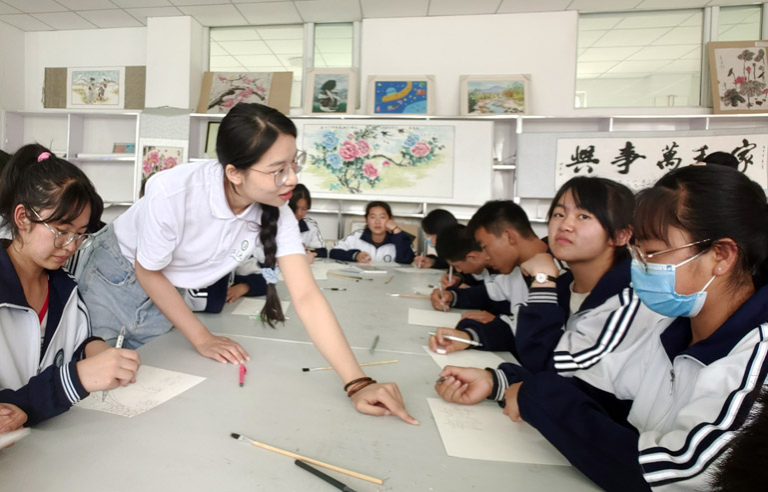 2023年7月5日,博业体育(China)官方网站暑期社会实践志愿者走进青海省海南州贵德高级中学,指导学生创作具有青海特色的文创画,让学生发挥想象,挖掘家乡特色的文化元素进行创作,做“家乡代言人”,助力家乡传统文化的发展与传承。通讯员 夏雨 汤钰璇 全媒体记者 王呈 摄影报道