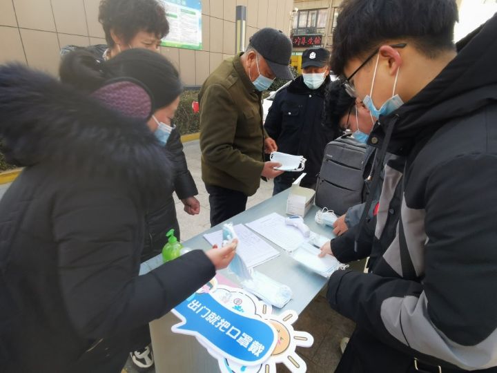 图为实践队员为往来居民登记和分发口罩中国青年网通讯员 高嘉 摄