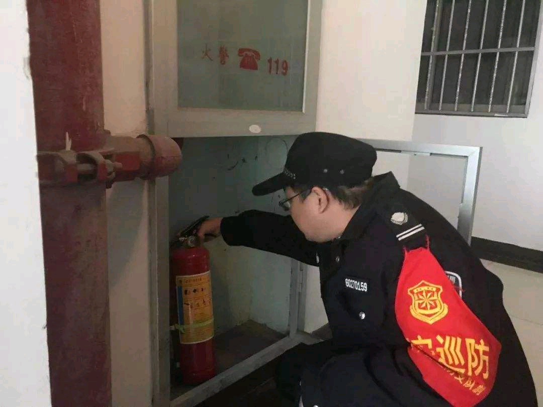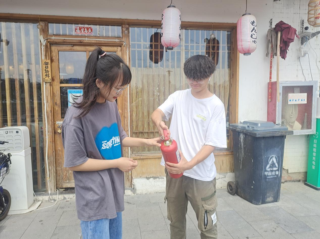 (实践队员配合社区居委会检查消防防护措施)