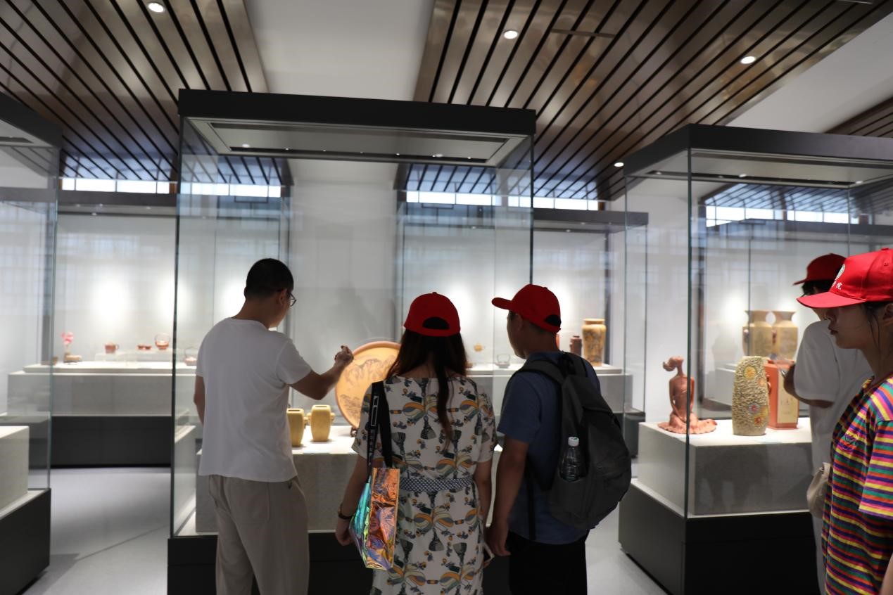 (吴俊峰老师带领实践团队参观韩美林紫砂艺术馆。韦城 摄)