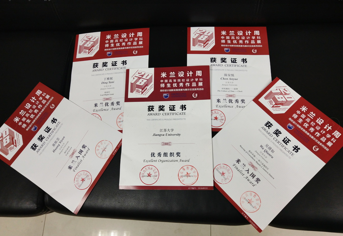 由意大利米兰设计周主办方与中国教育国际交流学会共同举办的“2018米兰设计周-中国高校设计学科师生优秀作品展”,日前分别在意大利米兰理工大学和湖北大学进行展览。经国内外专家层层筛选,我校艺术学院任雪梅老师指导的四位学生作品最终入选,其中陈安悦同学《时有八九—挂钟》和丁雅妮同学《枯荷灯》作品获优秀奖,吴倩如同学《重回幸福—铃兰花编织灯》和黄依芸同学《树叶屏风》作品获入围奖,我校还获的优秀组织奖。本次展览收到包括中国美术学院、东南大学、南京艺术学院等全国200多所艺术高校的三千余件投稿作品,大赛设学院奖、优秀奖和入围奖三个等次,经过初评和终选,评出学院奖45件、优秀奖97件、入围奖161件及优秀组织单位奖50家。
