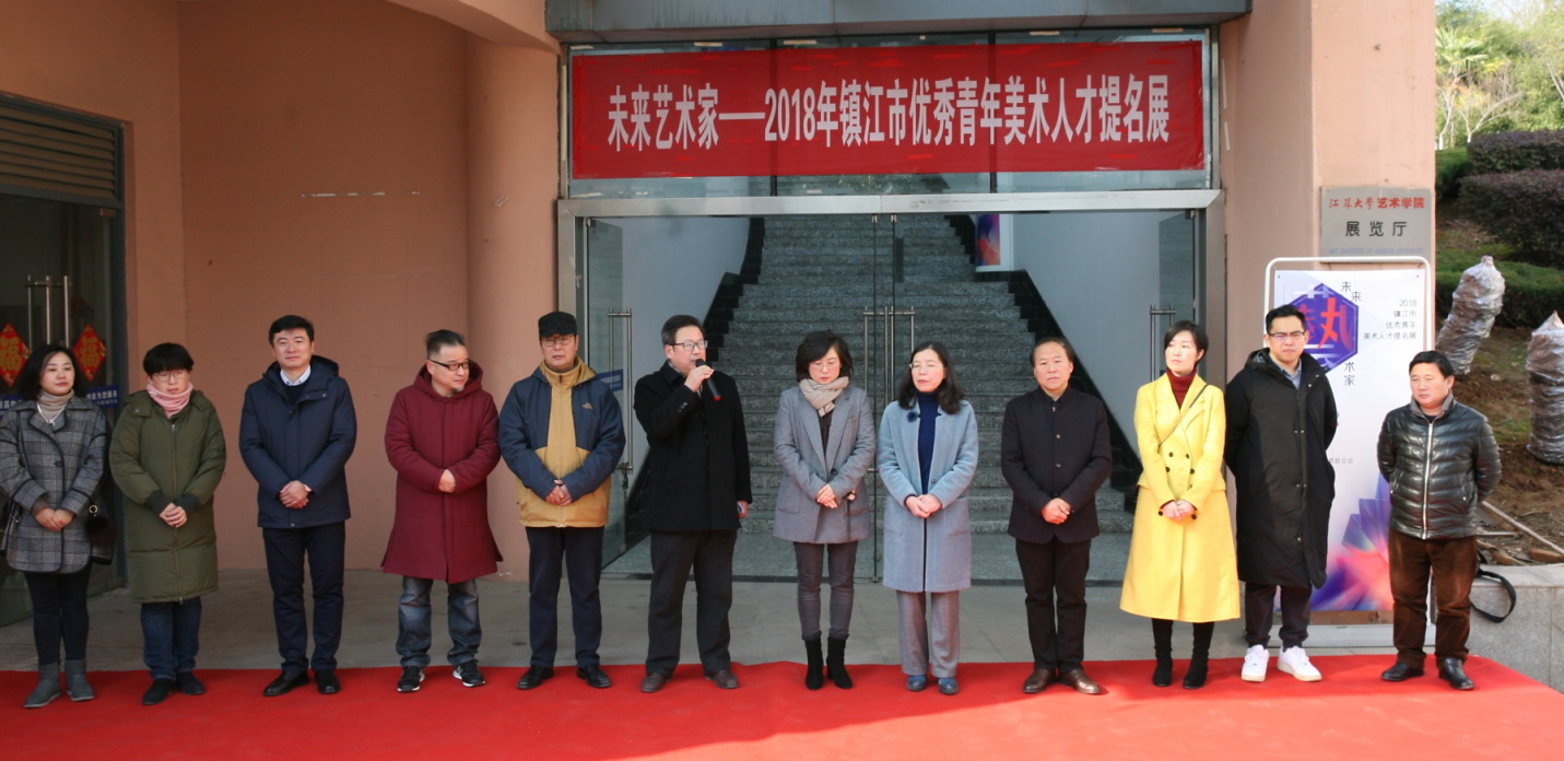 12月12日上午,“未来艺术家——2018镇江市优秀美术青年人才提名展”在我校艺术学院美术馆展出。镇江市美术家协会主席朱鹏举、副主席马洪峰出席和艺术学院全体院领导展览开幕式,学院部分教师、研究生和本科生代表计100余人参加了开幕式,开幕式由院党委书记朱立新主持。